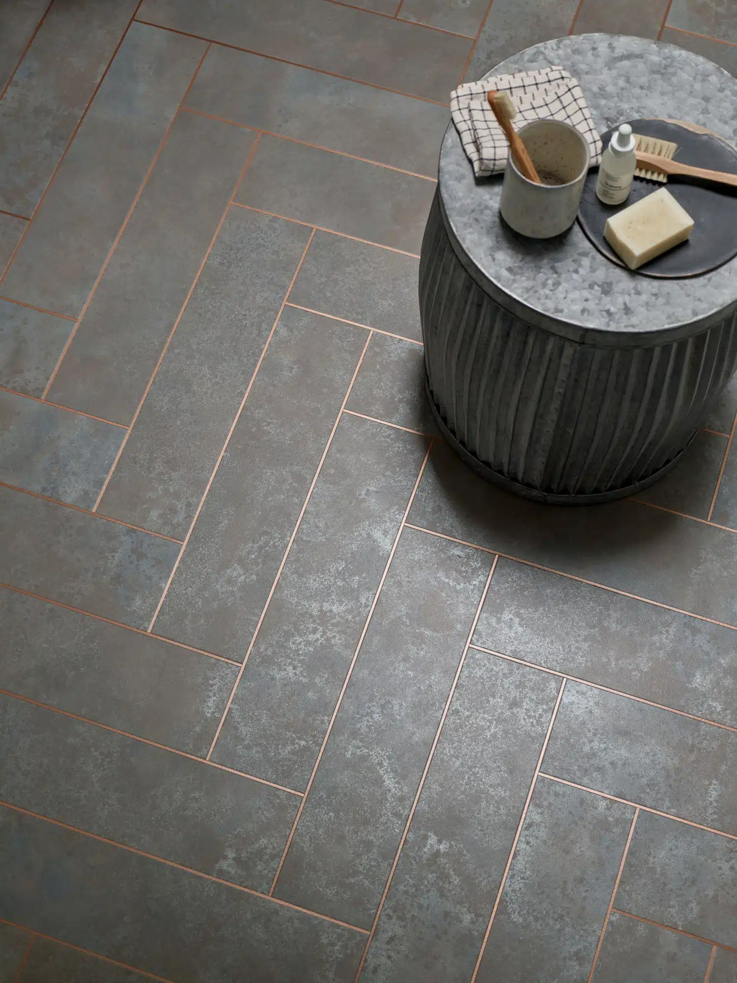 DC526 GreyBurnishedMetal LargeParquet 114x457mm PolishedCopper 3x915mm